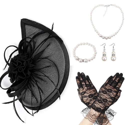 Anni 1950 Retrò Vintage Guanti Collana Cappello Fascinator Gentildonna Costume Per donna Mascherata Ascot Festival delle corse di cavalli Adulti Copricapo Tutte le stagioni