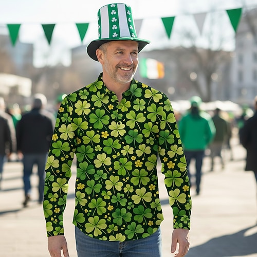 Set San Patrizio 2026 Retrò Vintage Anni '70 Cappello Camicia Camicia Aloha Lunghe Hippie Costume Per uomo Mascherata Feste Festival Adulti Camicia Cappello