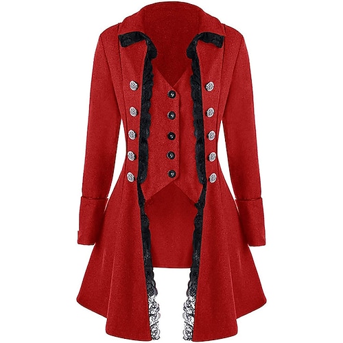 San Patrizio 2026 Medievale Rinascimento Cappotto Giacca Frac Lunghe Principessa Costume Per donna Reale Stile Steampunk Giorno di San Patrizio Evento / Festa Mascherata Adulti Cappotto