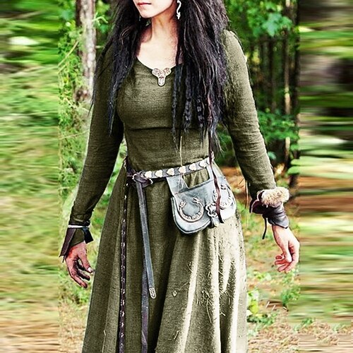 Retrò Vintage Medievale Rinascimento Vestito Costume Cosplay Abito Tunica Vichingo Ranger Elfico Costume Per donna Celtico Vichingo Halloween Carnevale Mascherata Performance Halloween LARP Adulti