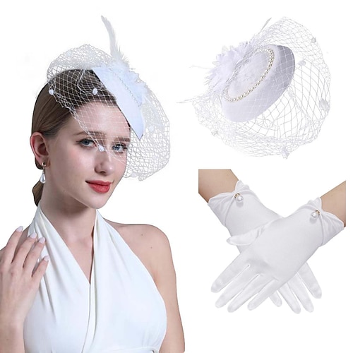 Anni 1950 Retrò Vintage Guanti Collana Cappello Fascinator Gentildonna Costume Per donna Mascherata Ascot Festival delle corse di cavalli Adulti Copricapo Tutte le stagioni