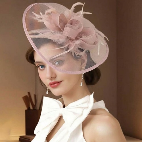 Vintage Anni 1950 Copricapo affascinante Gentildonna Piuma Costume Per donna Mascherata Tè Ascot Festival delle corse di cavalli Adulti Copricapo Tutte le stagioni