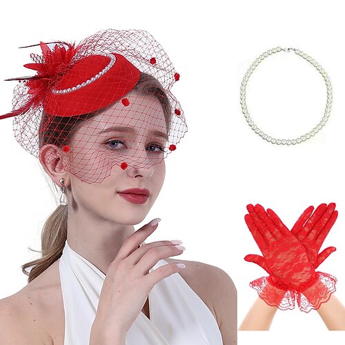 Set Anni 1950 Retrò Vintage Guanti Collana Cappello Fascinator con accessori Gentildonna Costume Per donna Mascherata Ascot Festival delle corse di cavalli Adulti Copricapo Guanti Collana Tutte le