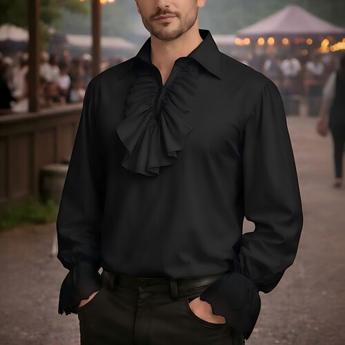 Vittoriano Medievale Rinascimento Costume di fantasia Camicia Vampiro Pirata Abiti reali Pizzo Volant Con Volant Costume Per uomo Costumi da pirata Fantasia Reale Halloween Carnevale Mascherata