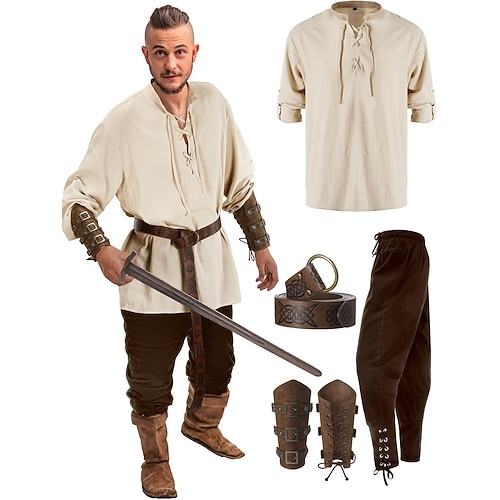 coppie retrò vintage medievale rinascimentale abiti halloween gruppo coppie costumi lunghezza caviglia vichingo valhalla uomo donna per halloween larp ren faire