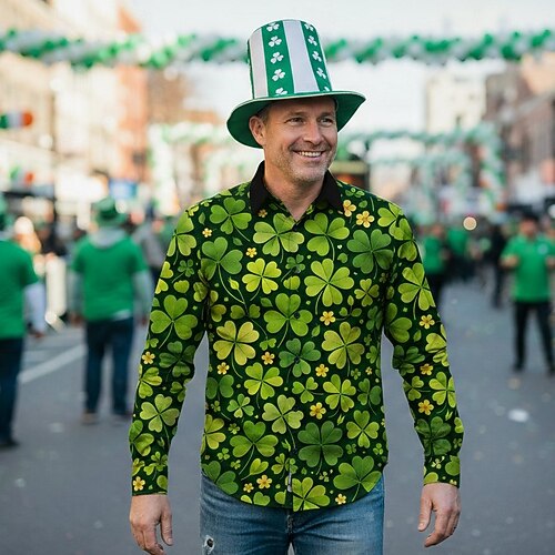 Set San Patrizio 2026 Retrò Vintage Anni '70 Cappello Camicia Camicia Aloha Lunghe Hippie Costume Per uomo Mascherata Feste Festival Adulti Camicia Cappello