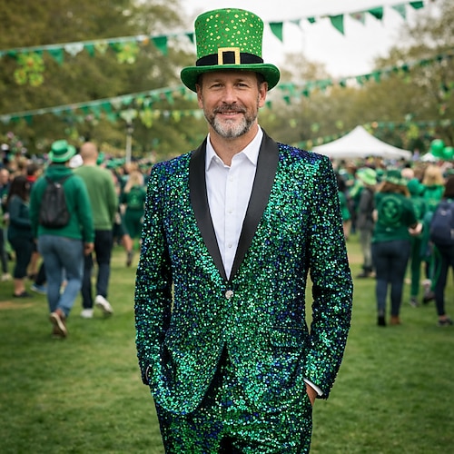 Set San Patrizio 2026 Disco Anni '80 Cappello Giacca Smoking Disco Paillettes Costume Per uomo Mascherata Balli di fine anno Feste Festa / Sera Adulti Cappotto Cappello