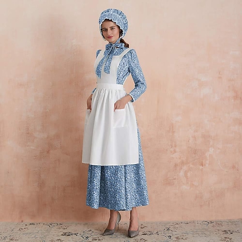 19° secolo anni 1800 Vecchio West Abito da prateria Set cuffia e grembiule Lunghe Ragazza pioniera Coloniale Pioniere Guerra rivoluzionaria Floreale Linea ad A Costume Per donna Halloween Carnevale