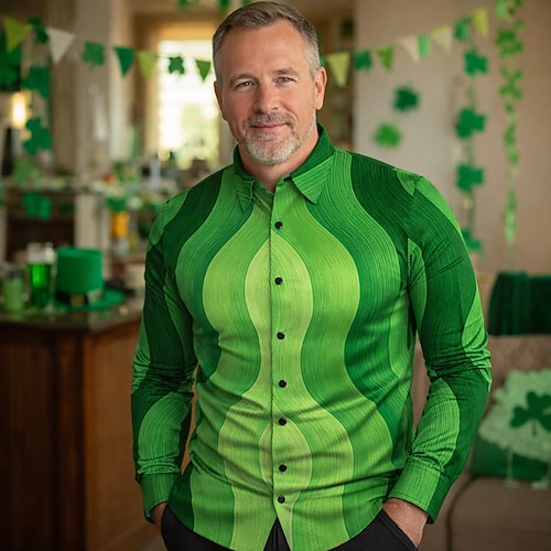 San Patrizio 2026 Retrò Vintage Anni '70 Camicia Disco Metallico Lucido Costume Per uomo Costume di Carnevale Halloween Carnevale martedì grasso Club Feste Performance Adulti Camicia Primavera