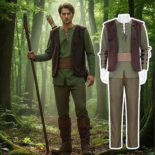 Medievale Rinascimento Costume di fantasia Tunica Vichingo Cavaliere Celtico Ranger Costume Per uomo Fantasia Halloween Carnevale Performance LARP Fiera Rinascimentale Adulti Costume