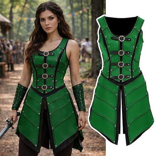 Medievale Rinascimento Vestito Armatura Gilet Guerriero Guerriera Barbaro Costume Per donna Vichingo Fantasia Halloween Carnevale Performance LARP Fiera Rinascimentale Adulti Vestito