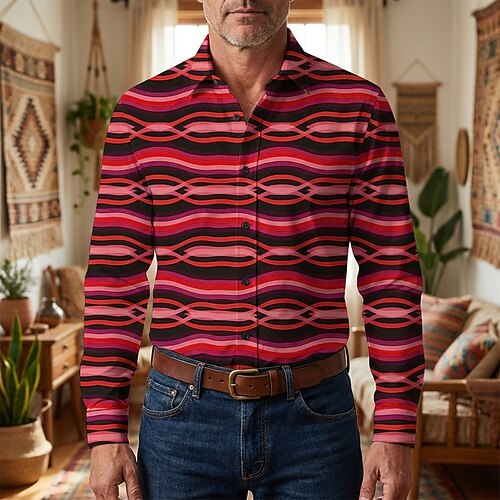 Retrò Vintage Anni '70 Camicia Camicia Aloha Lunghe Hippie Geometrico Costume Per uomo Mascherata Festival Musicale Feste Abbigliamento quotidiano Adulti Camicia