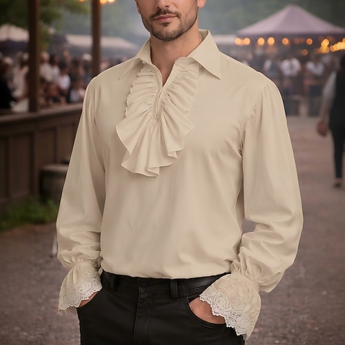Vittoriano Medievale Rinascimento Costume di fantasia Camicia Vampiro Pirata Abiti reali Pizzo Volant Con Volant Costume Per uomo Costumi da pirata Fantasia Reale Halloween Carnevale Mascherata