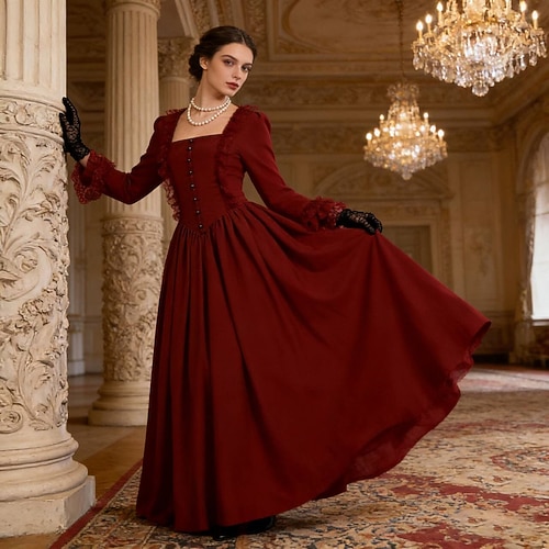 Vittoriano Medievale Rinascimento Vestito Costume di fantasia Abito da Ballo Lunghe Abiti reali Collo quadrato Costume Per donna Fantasia Halloween Carnevale Performance LARP Fiera Rinascimentale