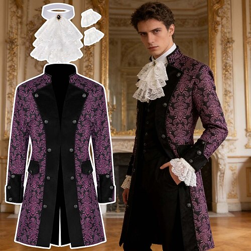 Rococò Medievale Rinascimento Cappotto Costume di fantasia Colletto increspato Lunghe Nobile Abiti reali Costume Per uomo Fantasia Halloween Carnevale Performance LARP Fiera Rinascimentale Adulti