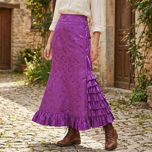 Gotico Vittoriano Medievale Lunghezza al pavimento Gonna Principessa Nobildonna Floreale Sirena Tromba Costume Per donna Fantasia Carnevale Mascherata Feste Fiera Rinascimentale LARP Adulti Gonna