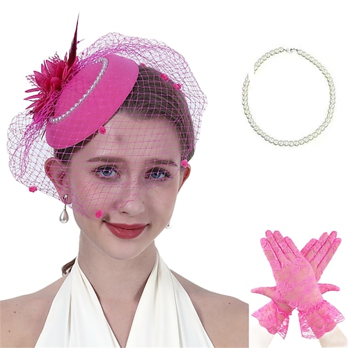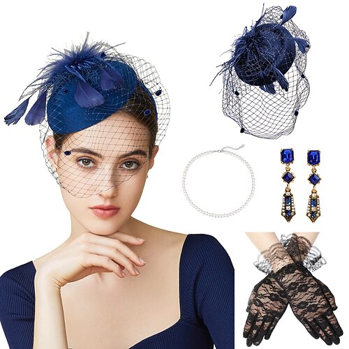 Set Anni 1950 Retrò Vintage Guanti Collana Cappello Fascinator con accessori Gentildonna Costume Per donna Mascherata Ascot Festival delle corse di cavalli Adulti Copricapo Guanti Collana Tutte le