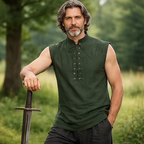 Medievale Rinascimento Camicia Senza maniche Pirata Vichingo Ranger Costume Per uomo Vichingo Costumi da pirata Fantasia Halloween Carnevale Fiera Rinascimentale LARP Adulti Camicia Tutte le stagioni