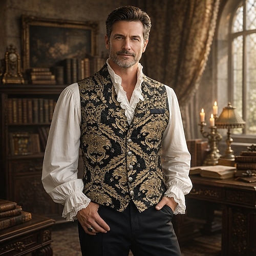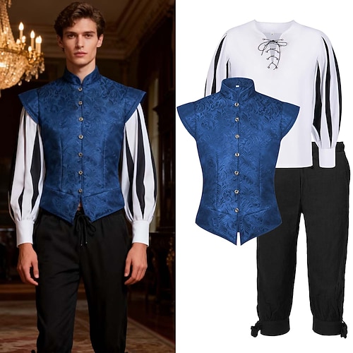 Rococò Rinascimento Costume di fantasia Camicia Gilet Vampiro Abiti reali Costume Per uomo Fantasia Halloween Carnevale Performance LARP Fiera Rinascimentale Adulti Gilet Camicia