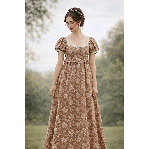 Retrò Vintage Medievale Rinascimento Lunghezza al pavimento Vestito Abito da Ballo Abito ispirato alla Reggenza A palloncino Jacquard Floreale Costume Per donna Halloween Carnevale Balli di fine anno