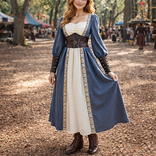 Set Retrò Vintage Medievale Rinascimento Lunghezza al pavimento Abiti con accessori Lunghe Vichingo Costume Per donna Halloween Carnevale Feste Fiera Rinascimentale Adulti Vestito Corsetto Parabraccia