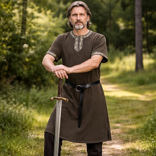 Medievale Rinascimento Lunghezza al ginocchio Cintura in Vita Tunica Maniche corte Vichingo Ranger Costume Unisex Celtico Vichingo Halloween Carnevale Fiera Rinascimentale LARP Adulti Top Cintura