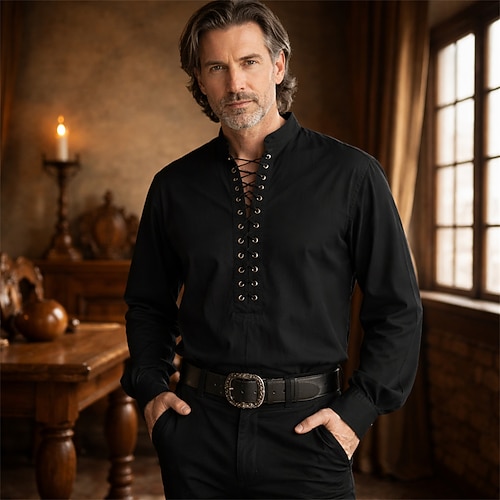 Gotico Medievale Rinascimento Camicia Lunghe Vichingo Ranger Allacciato Costume Per uomo Vichingo Halloween Carnevale Fiera Rinascimentale LARP Adulti Camicia Tutte le stagioni