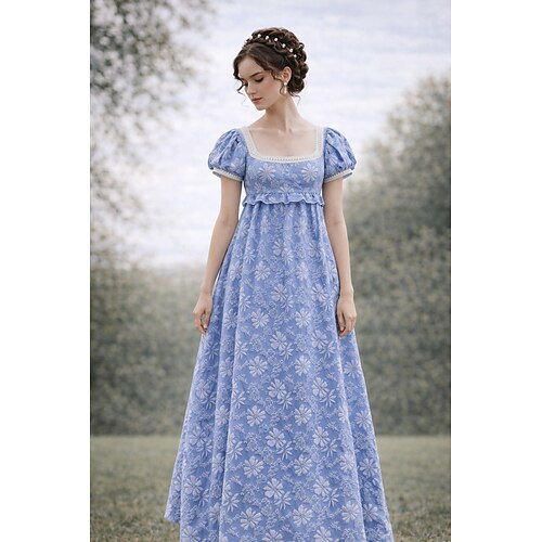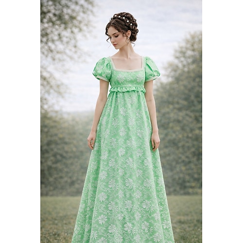Retrò Vintage Medievale Rinascimento Lunghezza al pavimento Vestito Abito da Ballo Abito ispirato alla Reggenza A palloncino Jacquard Floreale Costume Per donna Halloween Carnevale Balli di fine anno
