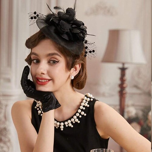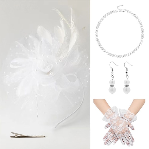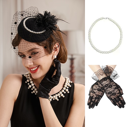 Set Anni 1950 Retrò Vintage Guanti Collana Cappello Fascinator con accessori Gentildonna Costume Per donna Mascherata Ascot Festival delle corse di cavalli Adulti Copricapo Guanti Collana Tutte le