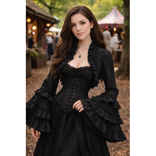 Rococò Rinascimento Steampunk Cappotto Costume di fantasia Camicia Manica a Balze Strega Vampiro Abiti reali Costume Per donna Fantasia Halloween Carnevale Performance LARP Fiera Rinascimentale Adulti
