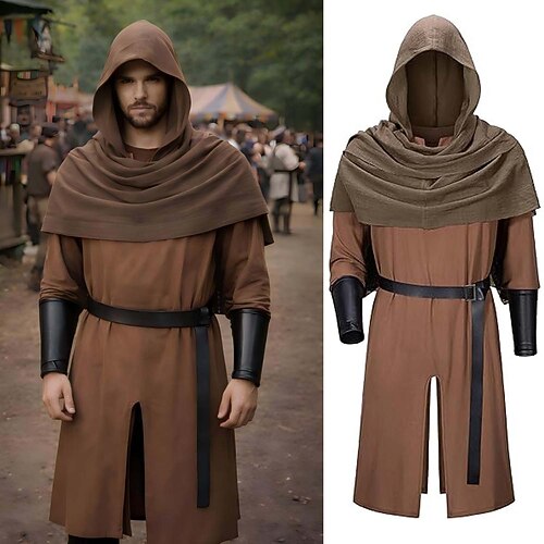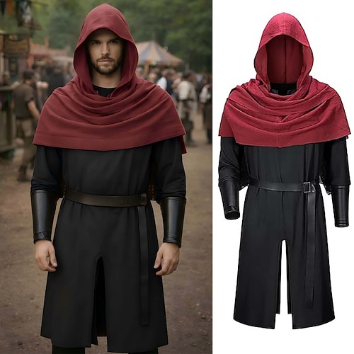 Set Retrò Vintage Medievale Rinascimento Cintura in Vita Polsino Tunica con accessori Lunghe Vichingo Ranger Costume Per uomo Fantasia Halloween Carnevale Fiera Rinascimentale LARP Festa a tema retrò