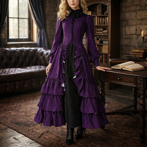 Gotico Vittoriano Medievale Lunghezza lunga Vestito con accessori Lunghe Strega Fata A righe Costume Per donna Fantasia Halloween Carnevale Performance Fiera Rinascimentale LARP Adulti Vestito Tutte
