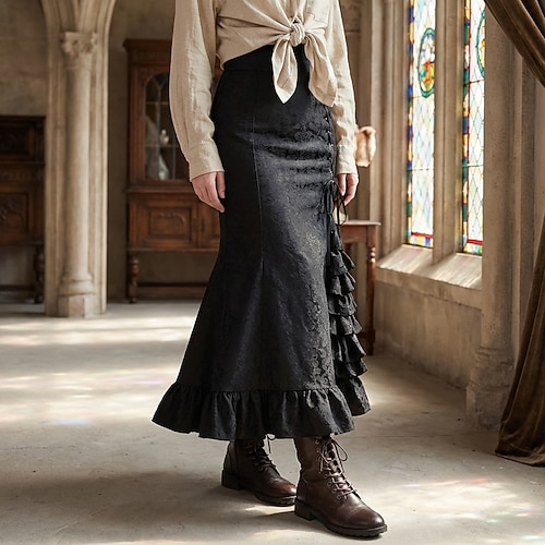 Gotico Vittoriano Medievale Lunghezza al pavimento Gonna Principessa Nobildonna Floreale Sirena Tromba Costume Per donna Fantasia Carnevale Mascherata Feste Fiera Rinascimentale LARP Adulti Gonna