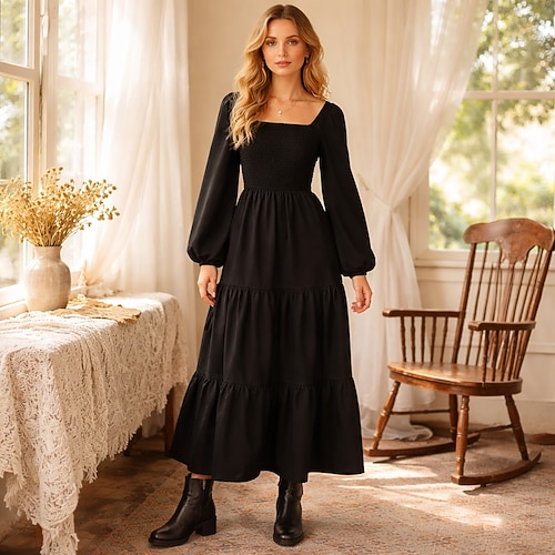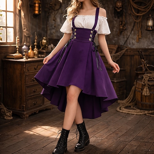 Retrò Vintage Medievale Rinascimento Mini Vestito Corsetto Ispirato alla Reggenza Tinta unica Linea ad A Altalena a dondolo Costume Per donna Fantasia Halloween Carnevale Vacanza Casual Quotidiano