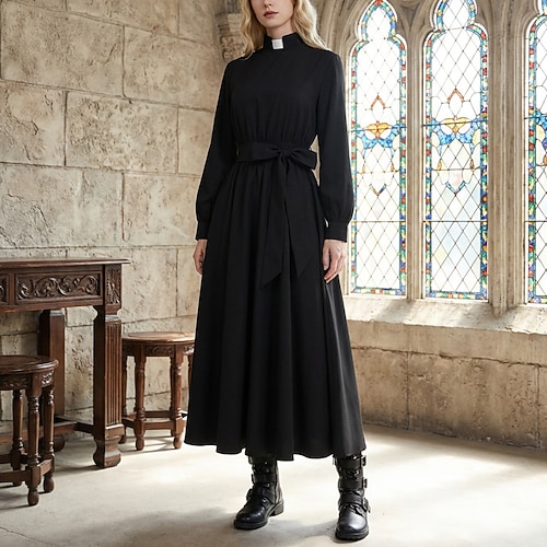 Medievale Rinascimento Lunghezza alla caviglia Vestito Lunghe Suora Tinta unica Linea ad A Costume Per donna Religioso e spirituale Halloween Carnevale Mascherata Fiera Rinascimentale LARP Festa a