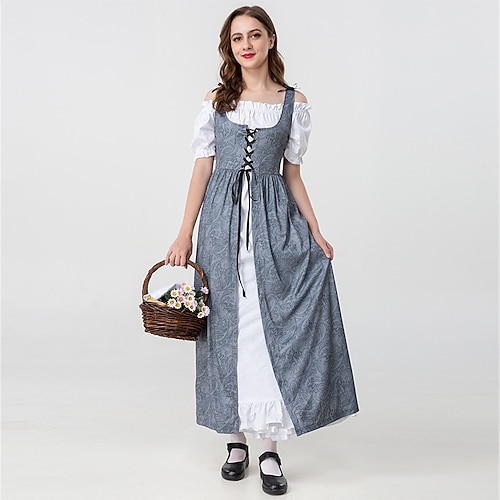 Vintage Medievale Rinascimento Lunghezza lunga Vestito Fata Allacciato Linea ad A Costume Per donna Fantasia Halloween Carnevale Mascherata Fiera Rinascimentale LARP Festa a tema retrò Adulti Vestito