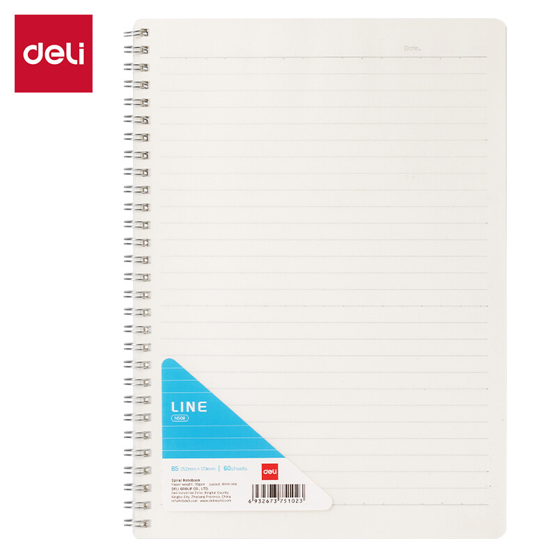 Cahier à Spirale Deli B5 avec Couverture PP : 60 Pages Papier 70gsm, Format 8 Lignes - Idéal pour l’École et le Bureau, Lot de 4