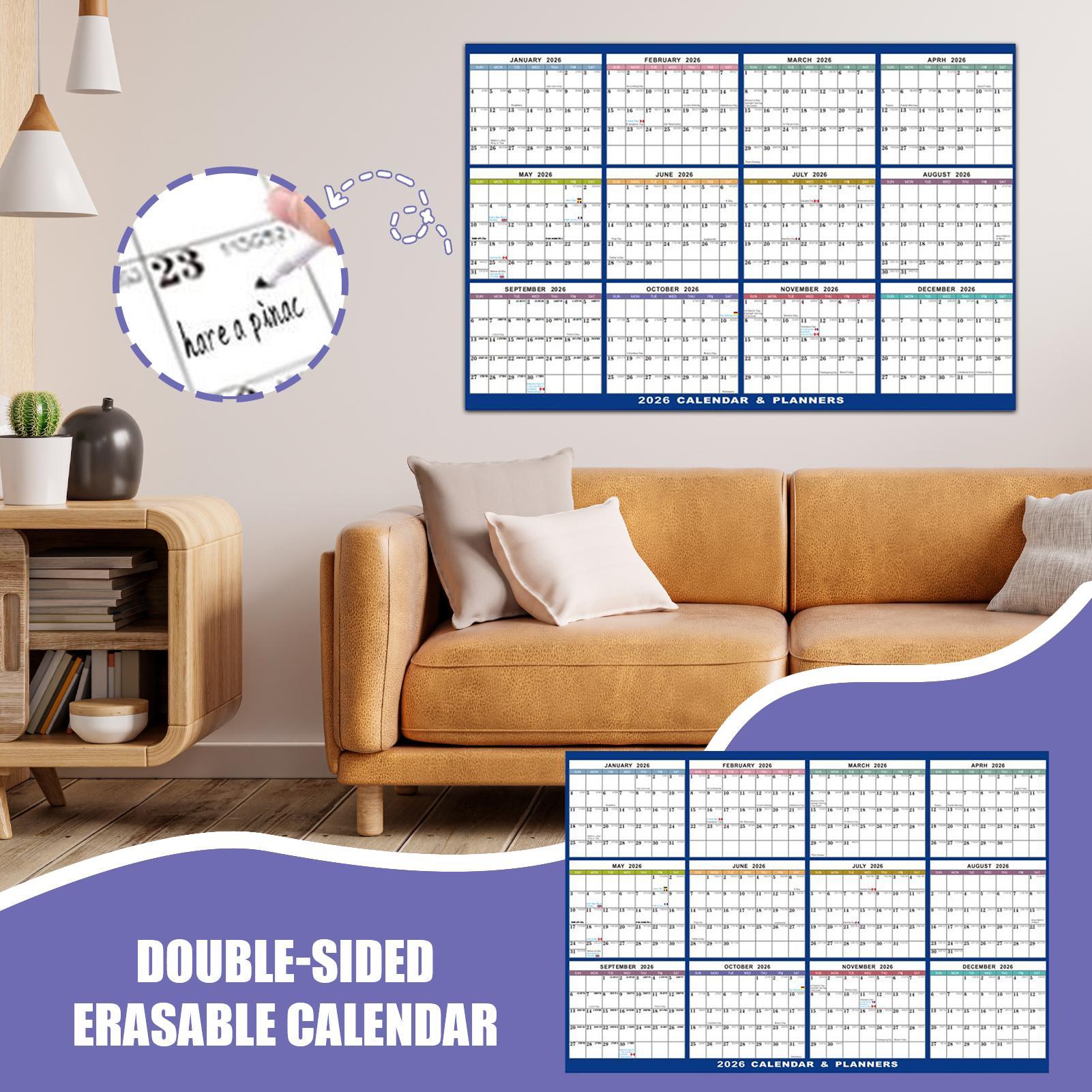 2026 Veggkalender Stor Slettbar, Tørrslettbar Akademisk Planlegger Med Sammenleggbart Design For Kontor Klasserom Hjemmedekor, Gave