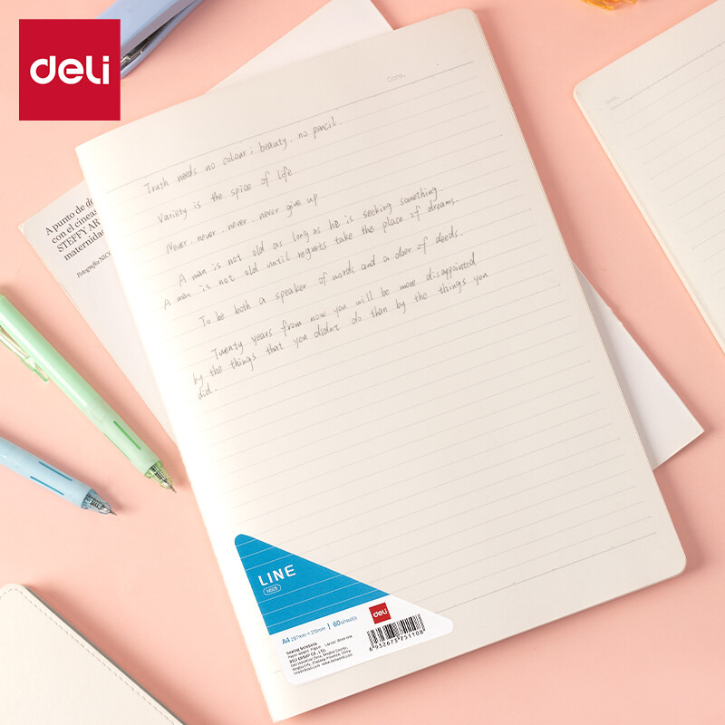 Deli A4 Spiral Notebook with PP Cover: 60 Pages of 70gsm Paper, 8-Line Format - Perfect for School & Work,4-Pack