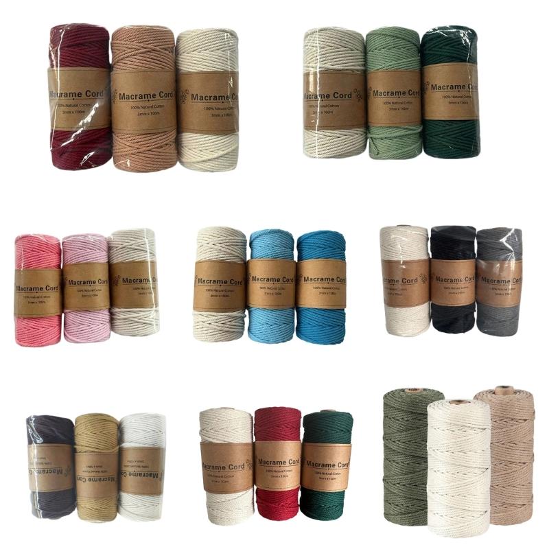 3 ruller bomullssnor 3 mm x 100 m Naturlig bomullssnor Garn Bomullstau for vegghengende Plantehengere Håndverk Hjemmedekorasjon