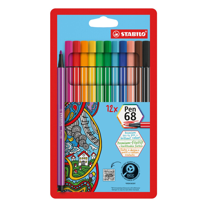 STABILO Pen 68 Coffret de 12 stylos-feutres de qualité premium à pointe fine