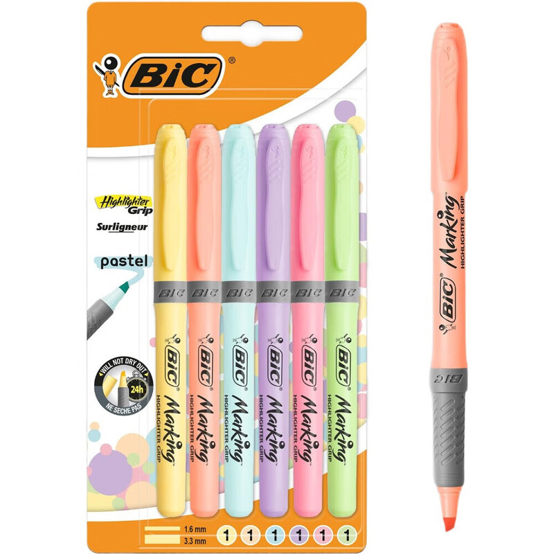 BIC Grip Lot de 6 surligneurs fluo pastels