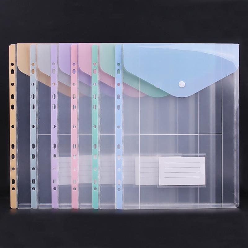 Pochette A4 Transparente 11 Trous avec Fermeture à Pression pour le Rangement de Documents