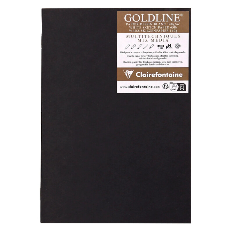 CLAIREFONTAINE GOLDLINE Carnet de dessin piqué 20 feuilles blanches 140 g/m² - A5