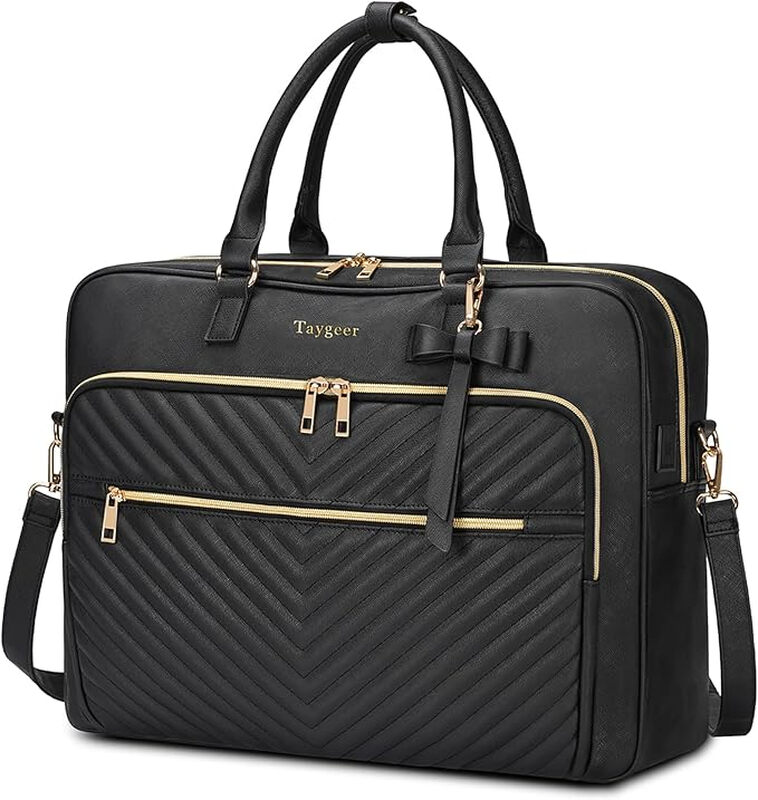 Laptoptasche Damen 17 Zoll, Laptop-Handtasche mit USB-Anschluss, wasserabweisende Lederschultertasche, große konvertierbare gesteppte Aktentasche Rucksack Tote Bag für Büro, Business, Schule, Schwarz, Neujahrs-Sale, Top-Geschenkideen