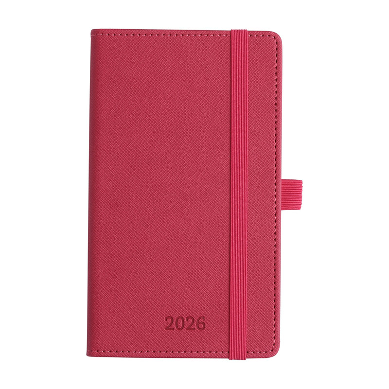 In-Luxpro Planer 2026, A6 (16,4 x 9,6 cm), Woche auf zwei Seiten, 6 Sprachen, Wochen- und Monatsplanung mit Monats-Tabs, Tasche und Ausgaben-/Notizseiten, 100 g/m² Papier, Hardcover aus PU-Leder, rosenrot, Neujahrsofferte, Top Geschenkideen