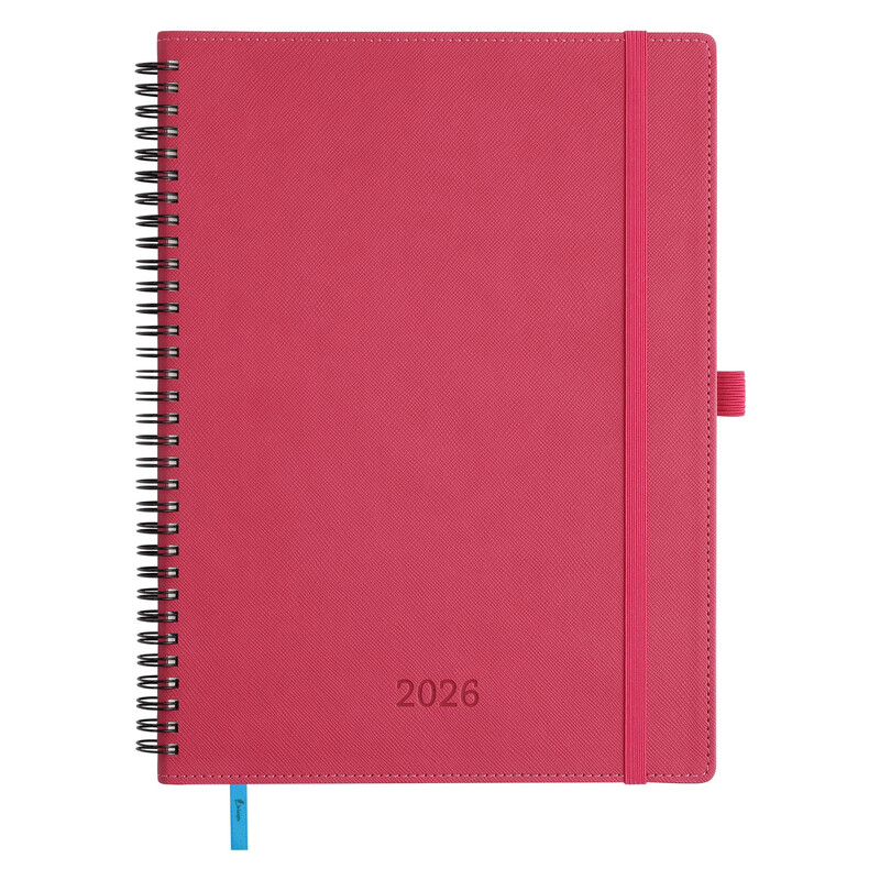 IN-LUXPRO Diary 2026 Spiral Planner A4 (29x21.7cm) Week to View, 12 Months Weekly & Monthly Plan with Month Tabs & Pocket & Expenses/Note Pages 100GSM Paper PU Leather Softcover Rose Red, New Year Sale , Top gift picks