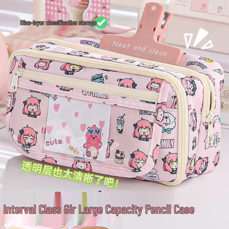 Trousse à crayons transparente Spy x Family: Grande Capacité, Sac Ita Mignon pour Étudiantes