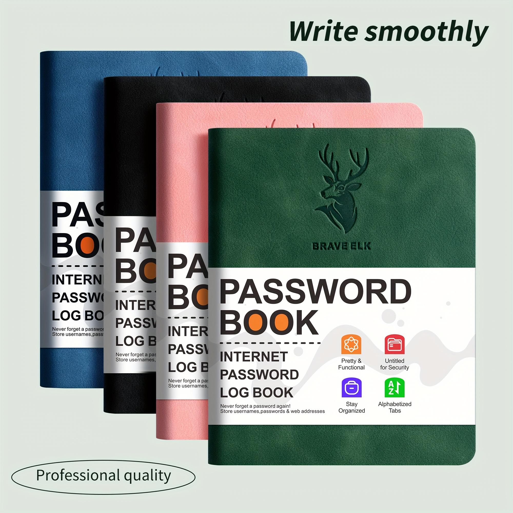 Sikker loggbok med omslag i imitert skinn, stor skrift og alfabetiske faner - Forebygg identitetstyveri, sikker passordlagring Svart