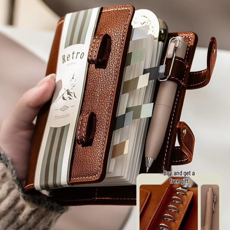 A7-Ringbuchplaner aus Hirsch- und Schafleder mit karierten Seiten